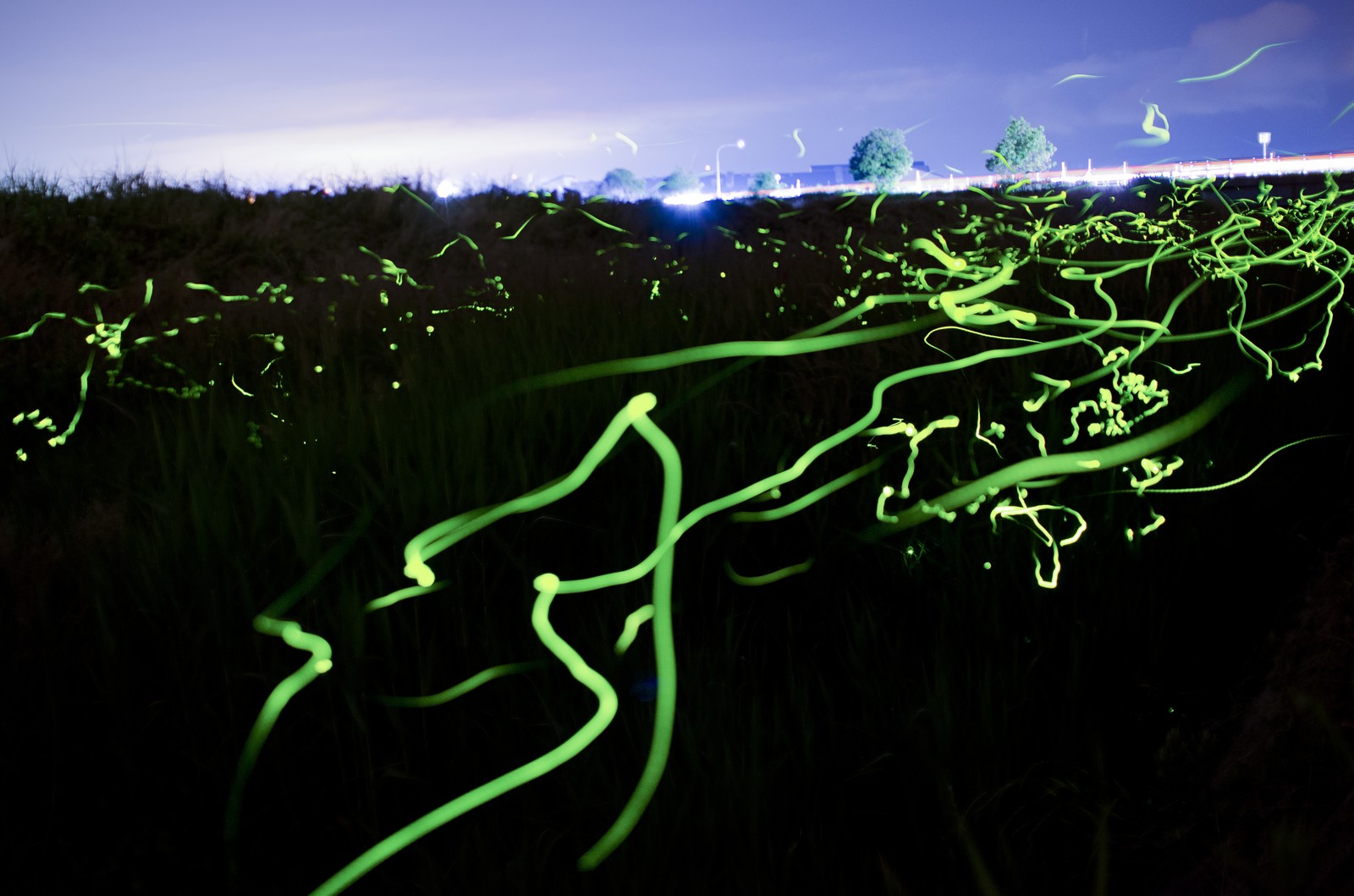 494号をkuromoriに向かって走ると、しばらくすると右手にLEDの照明が点々と光っているのが車窓からも見えて幻想的です。スマホではホタルはもちろん、その光すら奇麗に撮ることはできませんでした…。ホタルの撮影に来たカメラマンも何人かいらっしゃいました。