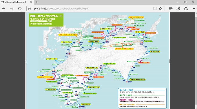愛媛県では、サイクリングを活用した地域振興を進めています。しまなみ海道でのサイクリング大会は有名ですが、これまでに「全県サイクリングマップ(疾走マップ)」を作成したり、サイクリングロードにはブルーラインを整備したりしています。参考:愛媛マル...